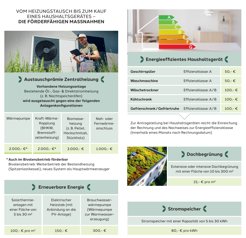Unter anderem wird zum 01.01.2026 der Programmpunkt "Energieeffiziente Haushaltsgeräte" ergänzt (Nur für Geräte, die ab dem 01.01.2026 gekauft werden). Darüber hinaus wird das Antragsverfahren komplett digitalisiert, um den Antragsprozess benutzerfreundlicher zu gestalten.